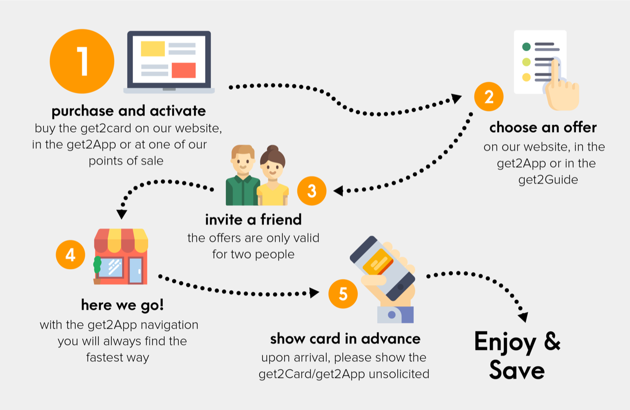 In order for you to benefit from our wide range of offers, you can use the offers as an get2Card/get2App member for a whole year, but only pay for membership once a year.